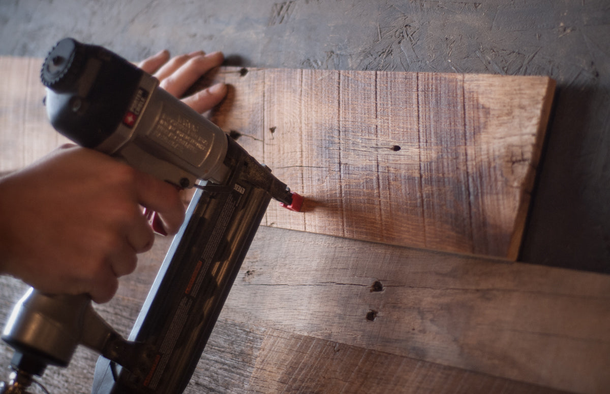 PlankWood can be installed using finish nails or construction adhesive—whichever works best for your wall type. Simple hand tools will do the job, power tools will make it easier.